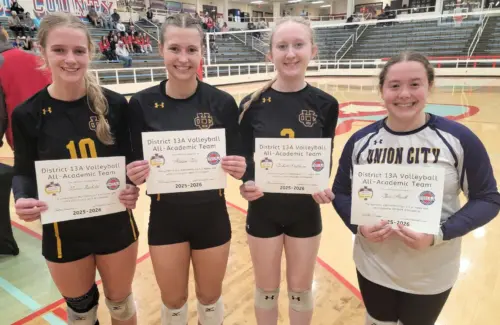 Gracie Sims was named the league’s regular season Co-Most Valuable Player, and was joined on the all-district team by mates Madie Theobald, Claire Atwill, and Ca’Lae Ervin. Addison Carr and Crickett Washburn were selected to the all-tournament squad, while Atwill, Carr, Theobald, and Washburn earned spots on the All-Academic Team, which is earned by seniors who have a 3.5 or better grade point average.