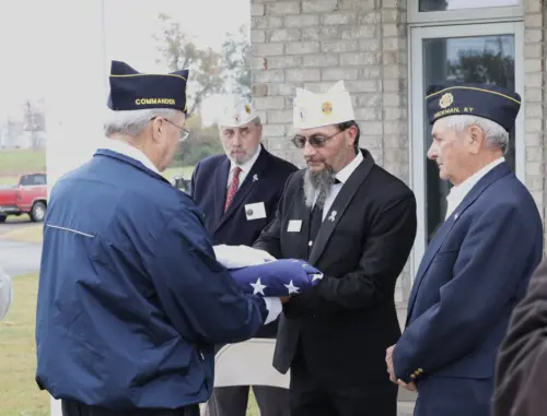 Friday’s event included a 21-gun salute, the playing of taps, the folding and presentation of the American Flag, and speech by Kentucky American Legion Commander John Garret.