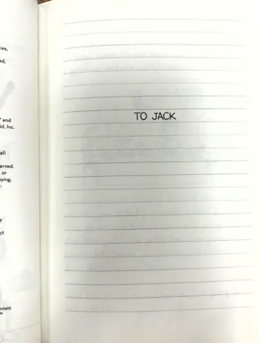 I was so sad to learn about the tragic passing of your son, Jack, last year. I was very touched to discover that he was a fan of my Diary of a Wimpy Kid series. I wanted to let you know that I dedicated the new book to Jack, and that his name is on the first page. I’m so sorry you lost your beautiful son. I’m sure you’re doing everything you can to keep his memory alive.”