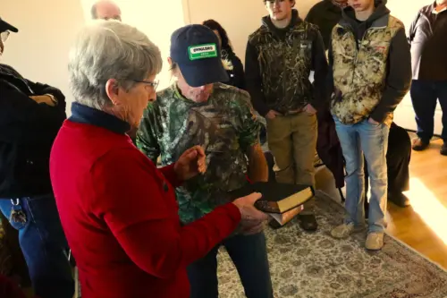 During the ceremony, Mrs. Pyron also presented a new Bible to Sellers, with those in attendance gathering to sing “There is Something About That Name”.