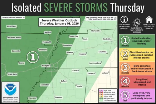Portions of the Ken-Tenn area has been placed in a “marginal risk” area for the potential weather on Thursday, and a Level 2 “slight risk” on Friday .